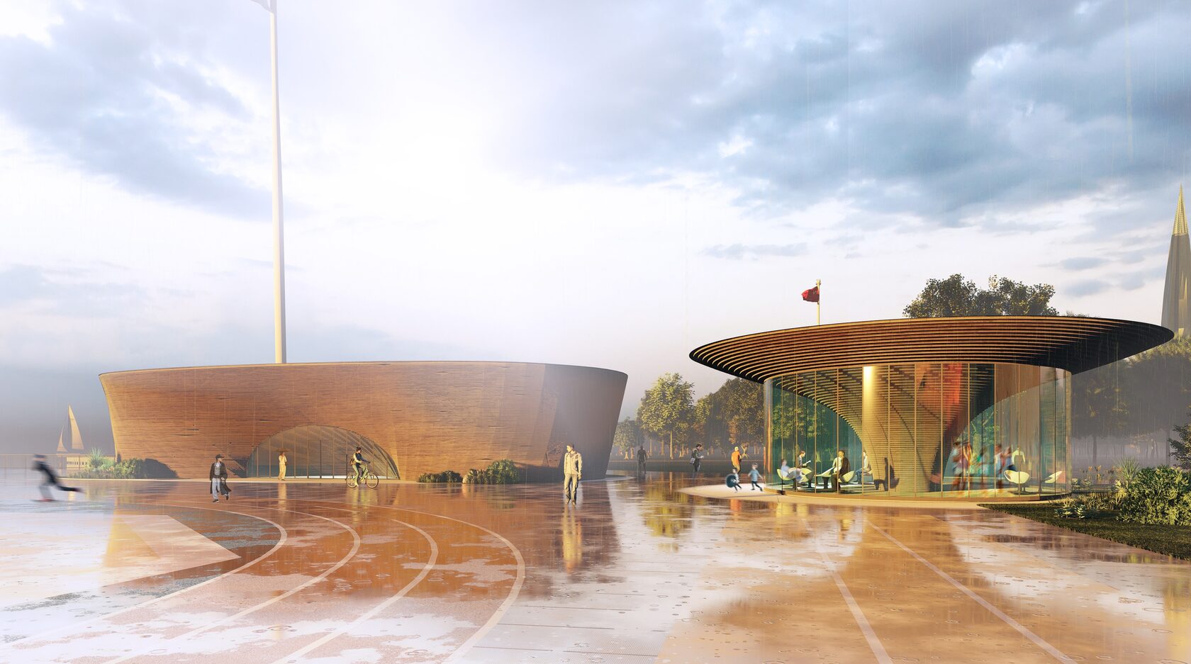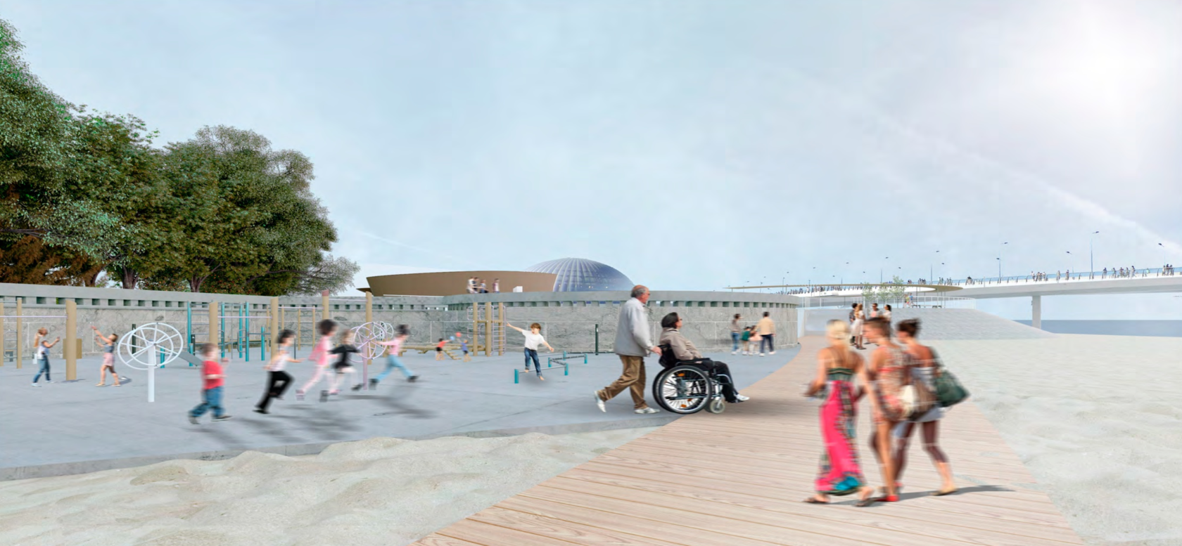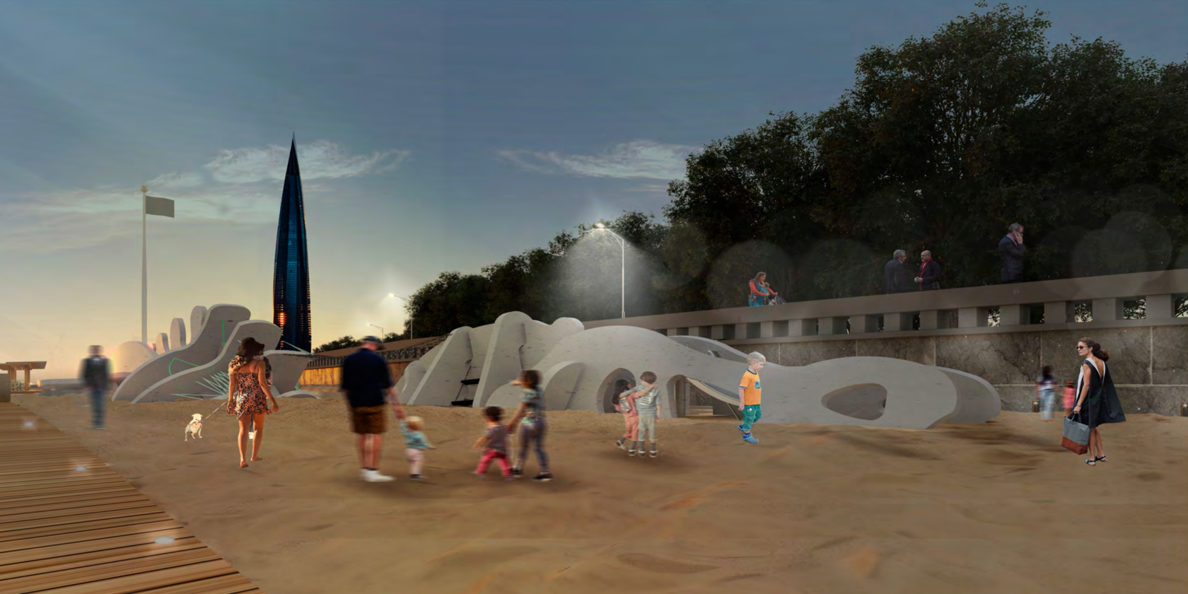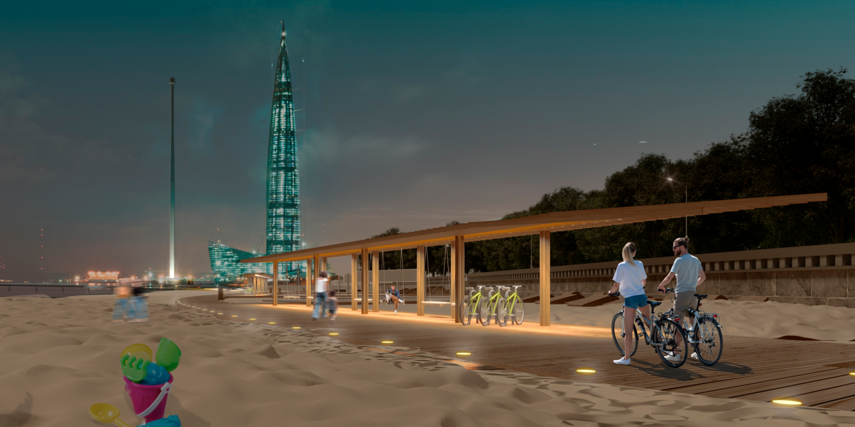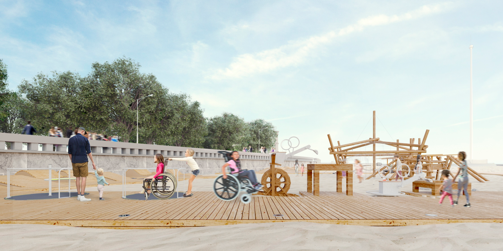 Проектом предусмотрено около 20 спортивных тренажеров в эко стиле, российского производства. На площадке, в том числе, будет размещено спортивное оборудование для маломобильных групп населения - многофункциональный уличный тренажерный комплекс, который включает в себя степпер, твистер, маятник, жим от груди, лыжник, брусья, лестницу, рули, хипс, вертикальную тягу и тренажер руль.